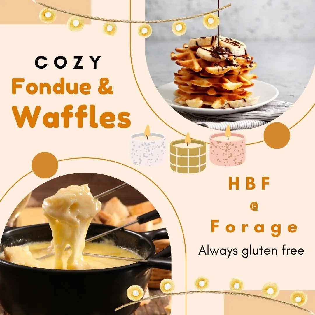 The ultimate cozy night! 🫕✨ Dip into warm, melty cheese fondue, then indulge in golden, gluten-free Belgian waffles topped with sweet seasonal toppings. It’s comfort food at its finest—perfect for a winter date night or festive gathering with friends.